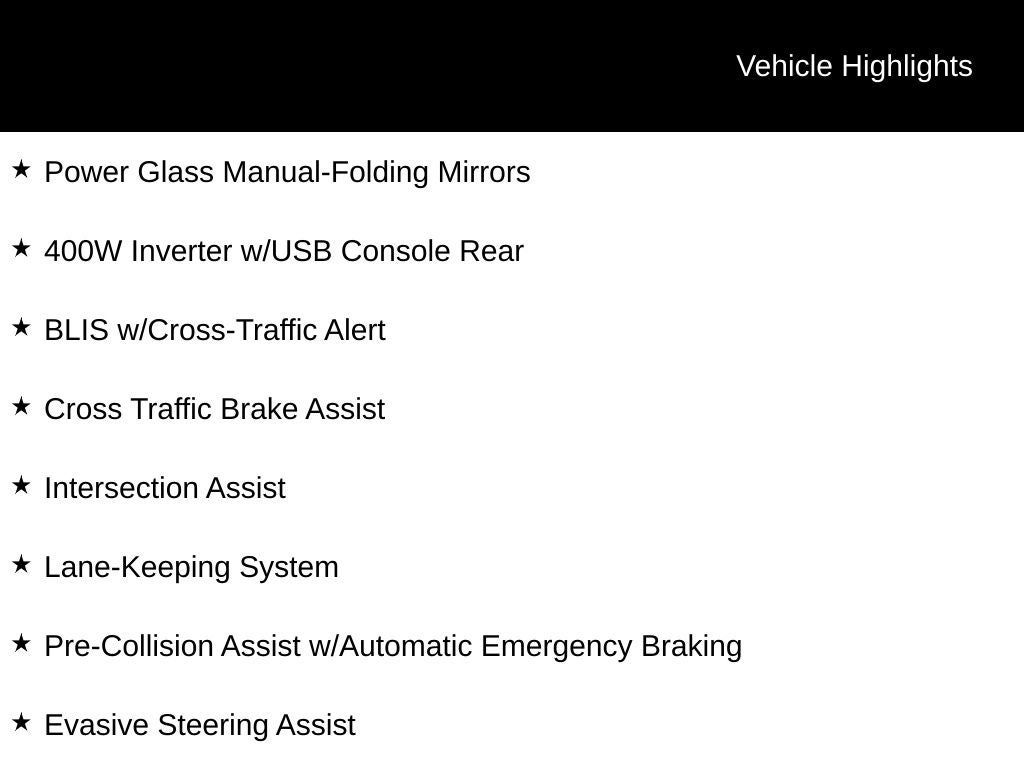 - Pre-Collision Assist w/Automatic Emergency Braking