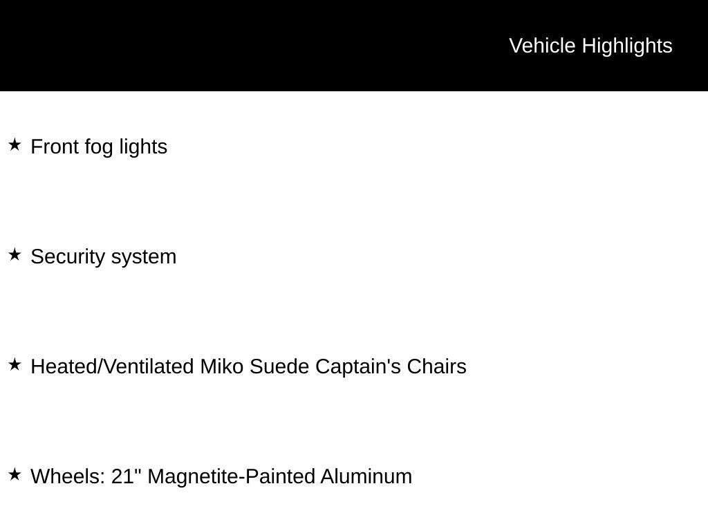 - Wheels: 21" Magnetite-Painted Aluminum