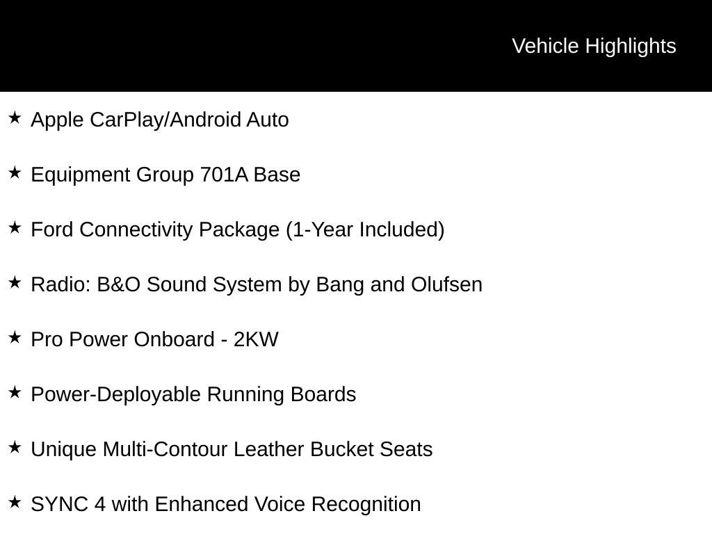 Purchase your vehicle completely online and WE'LL DELIVER it to your home! For more information on this vehicle, contact our Customer Care Team at 314-822-9300 Thank you for your time and your interest! May require Ford Credit Financing. May include aftermarket items not included in pricing. Residency restrictions apply. Price does not include $604 administrative fee. See dealer for complete details.$500 - Final Days Retail Customer Cash. Exp. 03/31/2026 Suntrup Ford now offers Lifetime Powertrain Protection on all eligible New and Pre-Owned Vehicles. It's no secret that people are keeping their vehicles longer and driving them farther than ever before. Because we want you to be our customer for life, our Ford dealership in St. Louis, MO is proud to provide Lifetime Powertrain Protection on our vehicles at no additional cost. We want you to have the peace of mind that comes from knowing you are covered for the cost of critical mechanical breakdowns. See dealer for details. Apple CarPlay/Android Auto, 4WD, Electronic Locking with 3.55 Axle Ratio, Equipment Group 701A Base, Ford Connectivity Package (1-Year Included), Power-Deployable Running Boards, Pro Power Onboard - 2KW, Radio: B&O Sound System by Bang and Olufsen, SYNC 4 with Enhanced Voice Recognition, Unique Multi-Contour Leather Bucket Seats, Wheels: 20 Painted Gloss Ebony Black. Agate Black Metallic 2026 Ford F-150 Platinum 4WD 10-Speed Automatic Recent Arrival! 3.5L V6 EcoBoost