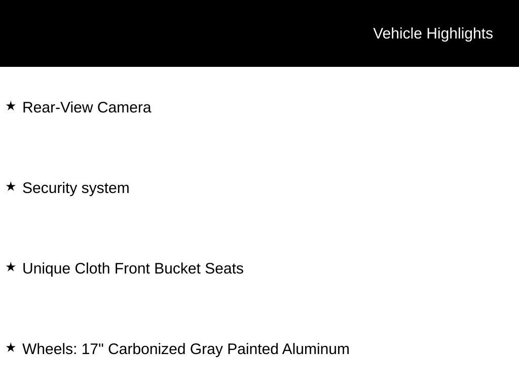 - Wheels: 17" Carbonized Gray Painted Aluminum