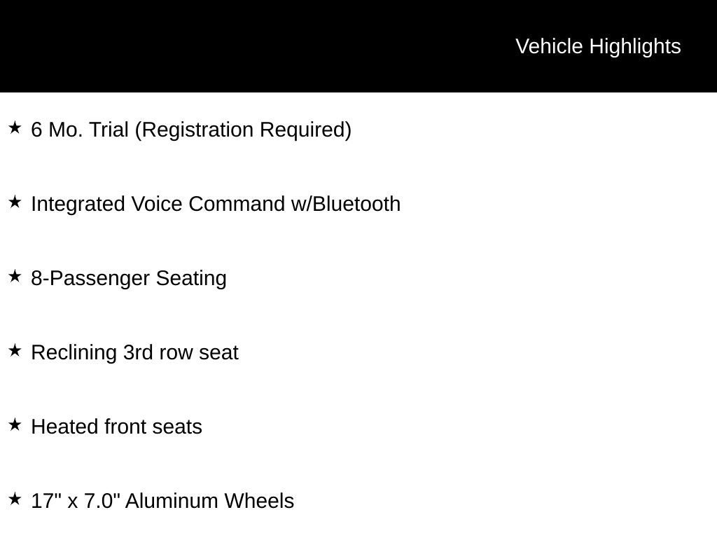 - ParkView Rear Back-Up Camera, Heated Front Seats, Reclining 3rd Row Seat