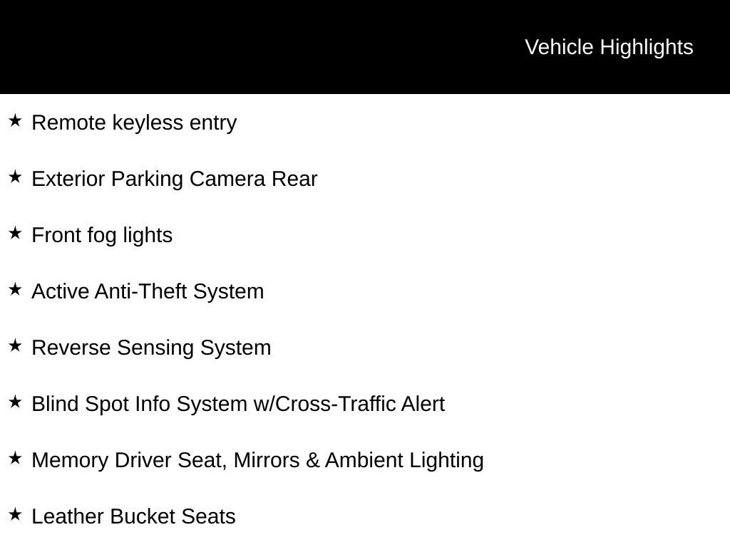 - Memory Driver Seat, Mirrors & Ambient Lighting