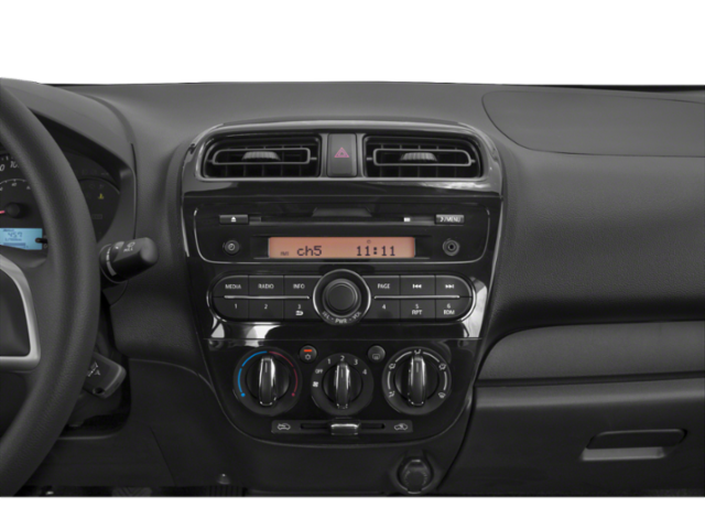 This Mirage G4 is well equipped with 4 Speakers, ABS brakes, Air Conditioning, AM/FM radio, Brake assist, Bumpers: body-color, Cloth Fabric Seating Surfaces, Driver door bin, Driver vanity mirror, Dual front impact airbags, Dual front side impact airbags, Electronic Stability Control, Exterior Parking Camera Rear, Front anti-roll bar, Front Bucket Seats, Front reading lights, Front wheel independent suspension, Illuminated entry, Knee airbag, Low tire pressure warning, Occupant sensing airbag, Overhead airbag, Panic alarm, Passenger door bin, Power door mirrors, Power steering, Power windows, Radio: AM/FM Display Audio, Rear seat center armrest, Rear window defroster, Remote keyless entry, Steering wheel mounted audio controls, Tachometer, Tilt steering wheel, Traction control, Trip computer, Variably intermittent wipers, and Wheels: 14 Steel w/Wheel Covers.