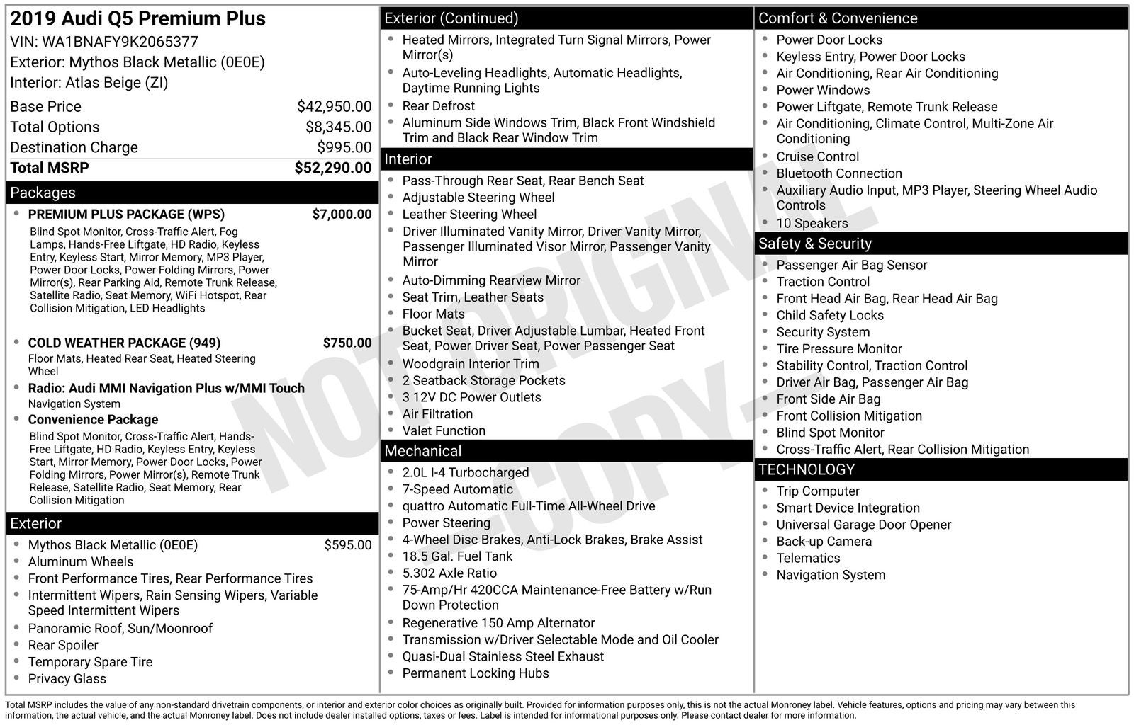2019 Audi Q5 2.0T Premium Plus quattro Mythos Black Metallic