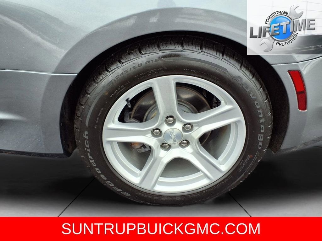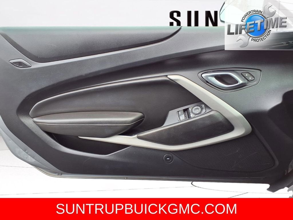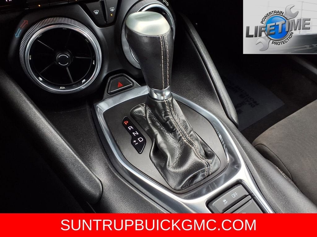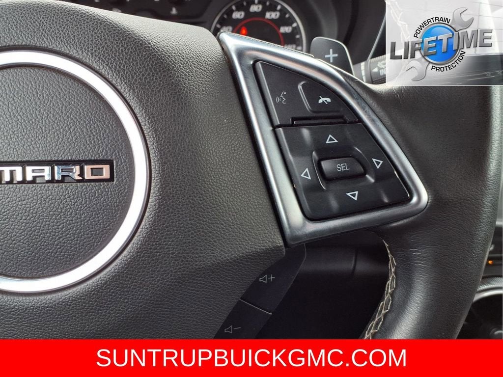 This Camaro is well equipped with Preferred Equipment Group 1LT, 6-Way Power Front Passenger Seat Adjuster, 8-Way Power Driver Seat Adjuster, Alloy wheels, Apple CarPlay/Android Auto, Power convertible roof, Remote Vehicle Starter System, Security system, Steering wheel mounted audio controls, Traction control, 18 Silver-Painted Aluminum Wheels, 4-Wheel Disc Brakes, 6 Speakers, 6-Speaker Audio System Feature, ABS brakes, Air Conditioning, AM/FM radio: SiriusXM, Automatic temperature control, Bluetooth® For Phone, Brake assist, Bumpers: body-color, Cloth Seat Trim, Compass, Convertible roof lining, Delay-off headlights, Driver door bin, Driver vanity mirror, Dual front impact airbags, Dual front side impact airbags, Electronic Stability Control, Exterior Parking Camera Rear, Four wheel independent suspension, Front anti-roll bar, Front Bucket Seats, Front Center Armrest, Front License Plate Bracket, Front reading lights, Front Sport Bucket Seats, Fully automatic headlights, Glass rear window, Illuminated entry, Knee airbag, Leather Shift Knob, Low tire pressure warning, Occupant sensing airbag, Paddle-Shift Manual Controls, Panic alarm, Passenger door bin, Passenger vanity mirror, Power door mirrors, Power driver seat, Power passenger seat, Power steering, Power windows, Premium audio system: Chevrolet Infotainment System, Radio data system, Radio: Chevrolet Infotainment 3 System, Rear anti-roll bar, Rear window defroster, Remote keyless entry, SiriusXM Radio, Speed control, Speed-sensing steering, Spoiler, Tachometer, Telescoping steering wheel, Tilt steering wheel, Tire Inflation Kit, Trip computer, Variably intermittent wipers, and Voltmeter.