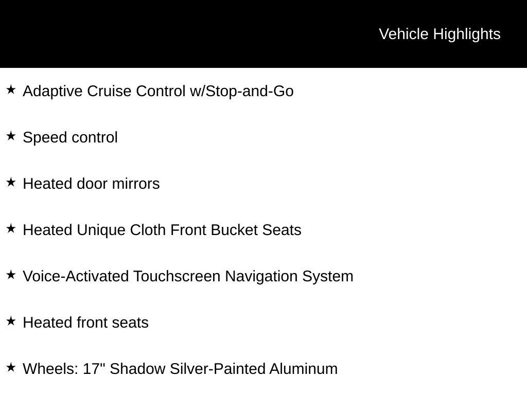 - Adaptive Cruise Control w/Stop-and-Go