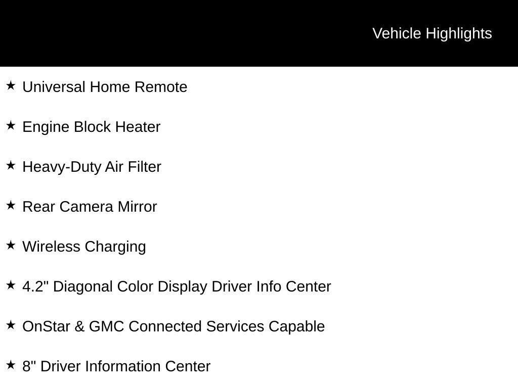 ** LOCAL TRADE **, Sierra 1500 AT4, 4D Crew Cab, 3.0L I6, 10-Speed Automatic, 4WD, Summit White, Jet Black w/Kalahari Accents w/Perforated Leather-Appointed Front Seat Trim, 10-Way Power Driver Seat Adjuster w/Lumbar, 10-Way Power Passenger Seat Adjuster w/Lumbar, 18 x 8.5 Machined Aluminum Wheels, 4.2 Diagonal Color Display Driver Info Center, Air Conditioning, Apple CarPlay/Android Auto, AT4 Preferred Package, Engine Block Heater, Front dual zone A/C, HD Rear Vision Camera, Heated Driver & Front Outboard Passenger Seating, Heavy-Duty Air Filter, Hitch Guidance, Memory seat, OnStar & GMC Connected Services Capable, Power driver seat, Power Sliding Rear Window w/Rear Defogger, Premium Bose 7-Speaker Sound System, Radio: Premium GMC Infotainment Sys w/Navigation, Remote keyless entry, Remote Vehicle Starter System, SiriusXM w/360L, Trailering Package, Universal Home Remote, Wireless Charging, 12-Volt Rear Auxiliary Power Outlet, 120-Volt Bed Mounted Power Outlet, 120-Volt Instrument Panel Power Outlet, 170 Amp Alternator, 2 USB Ports, 2 USB Ports (1st Row), 220 Amp Alternator, 3.23 Rear Axle Ratio, 4-Wheel Disc Brakes, 4G LTE Wi-Fi Hotspot Capable, 6 Speakers, 6-Speaker Audio System Feature, ABS brakes, Alloy wheels, AM/FM radio: SiriusXM with 360L, Auto-dimming door mirrors, Auto-dimming Rear-View mirror, Auto-Locking Rear Differential, Automatic temperature control, Auxiliary External Transmission Oil Cooler, Body-Color Surround Grille, Brake assist, Bumpers: body-color, Color-Keyed Carpeting Floor Covering, Compass, Deep-Tinted Glass, Delay-off headlights, Driver door bin, Driver Memory, Driver vanity mirror, Dual front impact airbags, Dual front side impact airbags, Electric Rear-Window Defogger, Electrical Lock Control Steering Column, Electronic Stability Control, Floor-Mounted Center Console, Front anti-roll bar, Front Bucket Seats, Front Center Armrest, Front fog lights, Front License Plate Kit, Front Prem Floor Liners w/Removable Carpet Insert, Front reading lights, Front wheel independent suspension, Fully automatic headlights, GMC Connected Access Capable, Heated door mirrors, Heated front seats, Heated steering wheel, Hill Descent Control, Hitch Guidance w/Hitch View, Illuminated entry, In-Vehicle Trailering App, Integrated Trailer Brake Controller, Keyless Open & Start, LED Cargo Area Lighting, Low tire pressure warning, Manual Tilt-Wheel & Telescoping Steering Column, Not Equipped w/HD Radio, Not Equipped w/Heated 2nd Row Outboard Seats, Occupant sensing airbag, Off-Road Suspension, Outside temperature display, Overhead airbag, Overhead console, Panic alarm, Passenger door bin, Passenger vanity mirror, Perforated Leather-Appointed Front Seat Trim, Power Door Locks, Power door mirrors, Power Front Passenger Windows w/Express Up/Down, Power Front Windows w/Driver Express Up/Down, Power passenger seat, Power Rear Windows w/Express Down, Power steering, Power windows, Preferred Equipment Group 4SB, Premium audio system: GMC Infotainment System, ProGrade Trailering System, Radio data system, Radio: Premium GMC Infotainment Sys w/Multi-Touch, Rear Dual USB Charging-Only Ports, Rear Prem Floor Liners w/Removable Carpet Insert, Rear reading lights, Rear seat center armrest, Rear step bumper, Rear Wheelhouse Liners, Rear window defroster, Red Recovery Hooks, Security system, Speed control, Speed-sensing steering, Split folding rear seat, Spray-On Pickup Bed Liner w/AT4 Logo, Steering Wheel Audio Controls, Steering wheel mounted audio controls, Tachometer, Telescoping steering wheel, Theft Deterrent System (Unauthorized Entry), Tilt steering wheel, Traction control, Trip computer, Variably intermittent wipers, Ventilated Driver & Front Passenger Seats, Ventilated front seats, Voltmeter, Sierra 1500 AT4, 4D Crew Cab, 3.0L I6, 10-Speed Automatic, 4WD, Summit White, Jet Black w/Kalahari Accents w/Perforated Leather-Appointed Front Seat Trim, 10-Way Power Driver Seat Adjuster w/Lu