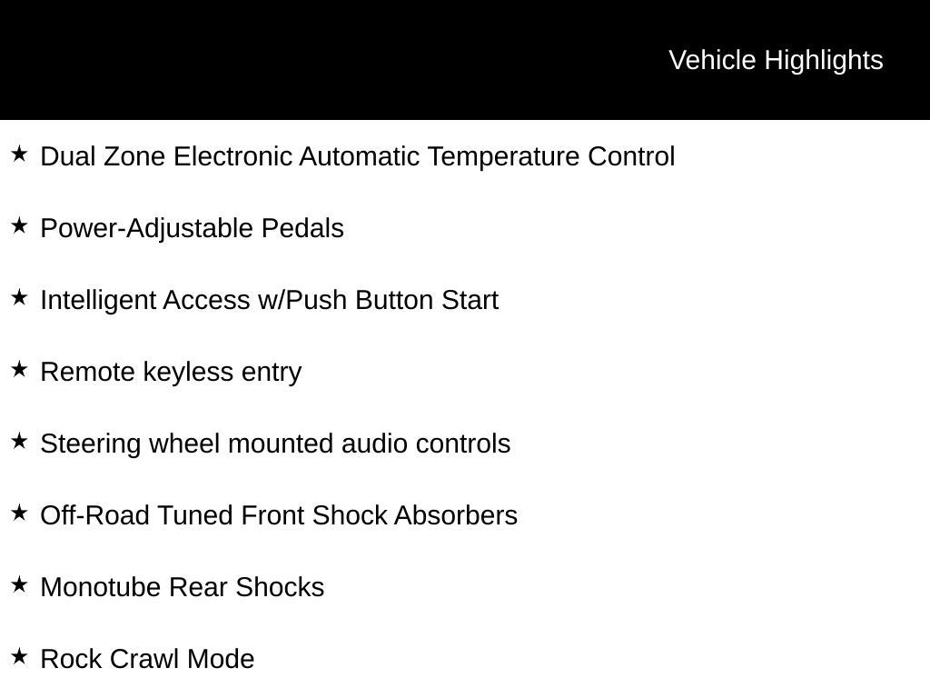 - 4-Wheel Disc Brakes w/4-Wheel ABS, Front And Rear Vented Discs, Brake Assist, Hill Hold Control and Electric Parking Brake