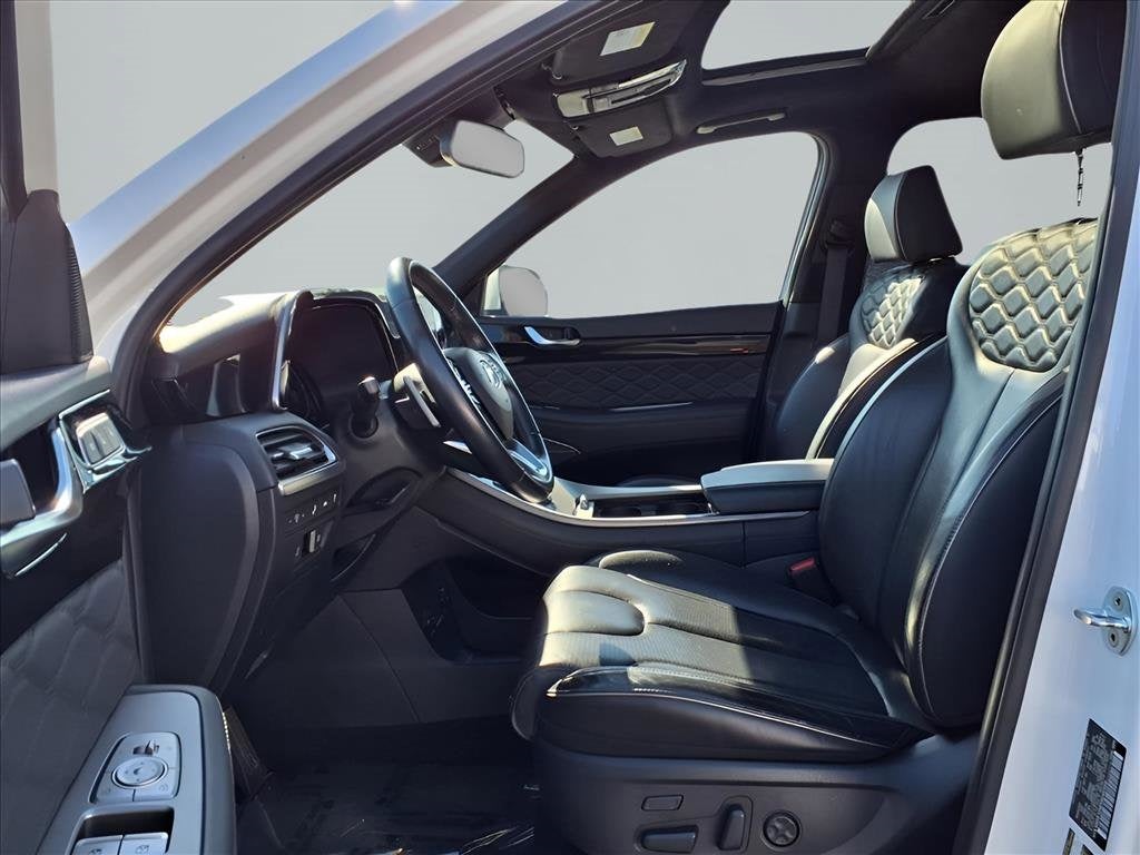 ** LEATHER **, Palisade Calligraphy, 4D Sport Utility, AWD, Black w/Premium Nappa Leather Seat Trim, 3rd row seats: split-bench, AM/FM radio: SiriusXM, Apple CarPlay & Android Auto, Auto-leveling suspension, Brake assist, Electronic Stability Control, Fully automatic headlights, harman/kardon® Speakers, Heads-Up Display, Heated & Ventilated Front Bucket Seats, Heated rear seats, Memory seat, Navigation System, Option Group 01, Power Liftgate, Power moonroof, Premium Nappa Leather Seat Trim, Radio: AM/FM/MP3 Premium Audio System, Rain sensing wipers, Remote keyless entry, Security system, Speed control, Steering wheel mounted audio controls, Traction control, Turn signal indicator mirrors, Ventilated rear seats, Wheels: 20 x 7.5J Calligraphy Exclusive Alloy, 12 Speakers, 3.648 Axle Ratio, 4-Wheel Disc Brakes, ABS brakes, Air Conditioning, Auto High-beam Headlights, Auto-dimming Rear-View mirror, Automatic temperature control, Bumpers: body-color, Cargo Block, Cargo Cover/Screen, Cargo Net, Cargo Package, Cargo Tray, Carpeted Floor Mats, Compass, Delay-off headlights, Driver door bin, Driver vanity mirror, Dual front impact airbags, Dual front side impact airbags, Emergency communication system: Blue Link Connected Car Service (3-year complimentary subscription), First Aid Kit, Four wheel independent suspension, Front anti-roll bar, Front Bucket Seats, Front Center Armrest, Front dual zone A/C, Front reading lights, Garage door transmitter: HomeLink, Heated door mirrors, Heated front seats, Heated steering wheel, Illuminated entry, Knee airbag, Low tire pressure warning, Occupant sensing airbag, Outside temperature display, Overhead airbag, Overhead console, Panic alarm, Passenger door bin, Passenger vanity mirror, Power door mirrors, Power driver seat, Power passenger seat, Power steering, Power windows, Radio data system, Rear air conditioning, Rear anti-roll bar, Rear audio controls, Rear reading lights, Rear window defroster, Rear window wiper, Reclining 3rd row seat, Speed-sensing steering, Split folding rear seat, Spoiler, Tachometer, Telescoping steering wheel, Tilt steering wheel, Trip computer, Variably intermittent wipers, Ventilated front seats, Wheel Locks, 1 Owner CarFax!, Low Miles!!!, Palisade Calligraphy, 4D Sport Utility, AWD, Black w/Premium Nappa Leather Seat Trim, 3rd row seats: split-bench, AM/FM radio: SiriusXM, Apple CarPlay & Android Auto, Auto-leveling suspension, Brake assist, Electronic Stability Control, Fully automatic headlights, harman/kardon® Speakers, Heads-Up Display, Heated & Ventilated Front Bucket Seats, Heated rear seats, Memory seat, Navigation System, Option Group 01, Power Liftgate, Power moonroof, Premium Nappa Leather Seat Trim, Radio: AM/FM/MP3 Premium Audio System, Rain sensing wipers, Remote keyless entry, Security system, Speed control, Steering wheel mounted audio controls, Traction control, Turn signal indicator mirrors, Ventilated rear seats, Wheels: 20 x 7.5J Calligraphy Exclusive Alloy. Priced below KBB Fair Purchase Price!