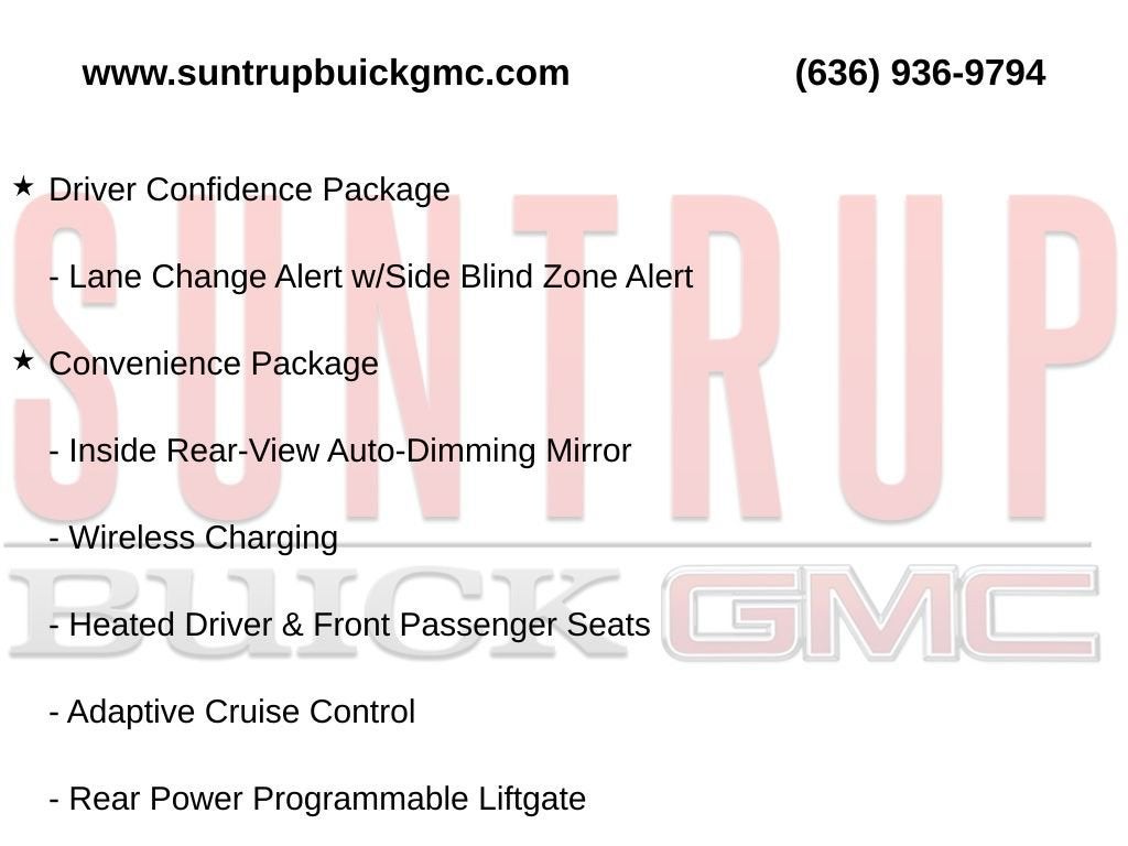 Adaptive Cruise Control, Alloy wheels, Black Roof-Mounted Side Rails, Convenience Package, Driver Confidence Package, Enhanced Automatic Emergency Braking, Front & Rear Black Bowties, Heated Driver & Front Passenger Seats, Inside Rear-View Auto-Dimming Mirror, Lane Change Alert w/Side Blind Zone Alert, Midnight/Sport Edition, Preferred Equipment Group 2LT, Rear Cross Traffic Alert, Rear Park Assist w/Audible Warning, Rear Power Programmable Liftgate, Remote keyless entry, Security system, Steering wheel mounted audio controls, Traction control, Universal Home Remote, Wheels: 18 High Gloss Black Painted Aluminum, Wireless Charging.
