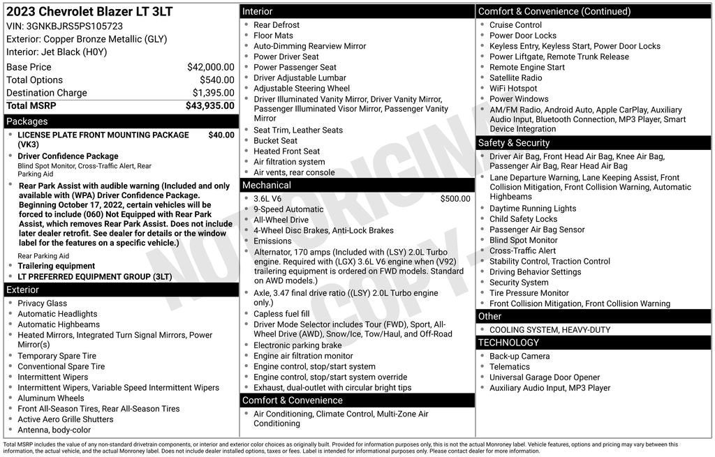 Experience the perfect blend of style, performance, and advanced features in this 2023 Chevrolet Blazer LT. Visit our showroom today to take this remarkable SUV for a test drive and discover why it's the perfect choice for your next vehicle.