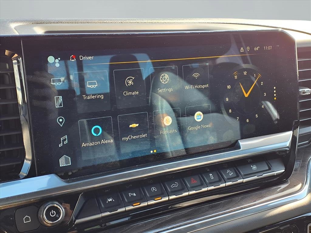 Silverado 1500 LTZ, 4D Crew Cab, EcoTec3 5.3L V8, 4WD, Jet Black w/Leather-Appointed Front Seat Trim, 10-Way Power Driver Seat w/Lumbar, 10-Way Power Passenger Seat Adjuster w/Lumbar, 12.3 Multicolor Reconfigurable Digital Display, 120-Volt Bed Mounted Power Outlet, 120-Volt Instrument Panel Power Outlet, 2nd Row Heated Outboard Seats, Adaptive Cruise Control, Apple CarPlay/Android Auto, Auto-dimming door mirrors, Auto-Dimming Inside Rear-View Mirror, Auto-Locking Rear Differential, Automatic temperature control, Bluetooth® For Phone, Brake assist, Chevrolet Connected Access Capable, Chrome Mirror Caps, Color-Keyed Carpeting Floor Covering, Compass, Deep-Tinted Glass, Driver Memory, Dual Exhaust w/Polished Outlets, Electric Rear-Window Defogger, Electrical Steering Column Lock, Electronic Cruise Control, Electronic Stability Control, Floor Mounted Center Console, Front fog lights, Front Frame-Mounted Black Recovery Hooks, Front LED Fog Lamps, Front Rainsensing Wipers, Front Rubberized Vinyl Floor Mats, Fully automatic headlights, HD Surround Vision, Heated Driver & Front Outboard Passenger Seats, Heated Steering Wheel, High Capacity Suspension Package, Hill Descent Control, Hitch Guidance, Hitch Guidance w/Hitch View, Integrated Trailer Brake Controller, Keyless Open & Start, LED Cargo Area Lighting, LTZ Convenience Package, LTZ Convenience Package II, LTZ Plus Package, Off-Road Suspension, OnStar & Chevrolet Connected Services Capable, Outside Heated Power-Adjustable Mirrors, Perforated Leather-Appointed Front Seat Trim, Perimeter Lighting, Power Front Passenger Windows w/Express Up/Down, Power Front Windows w/Driver Express Up/Down, Power Rear Windows w/Express Down, Power Sliding Rear Window w/Rear Defogger, Power Tailgate, Power Tilt & Telescoping Steering Column, Preferred Equipment Group 1LZ, Premium Bose 7-Speaker Sound System, Rear Cross Traffic Alert-Braking, Rear Pedestrian Alert, Rear Rubberized-Vinyl Floor Mats, Rear Wheelhouse Liners, Remote Vehicle Starter System, Safety Alert Seat, Safety Package, SiriusXM w/360L, Standard Tailgate, Steering Wheel Audio Controls, Theft Deterrent System (Unauthorized Entry), Trailer Camera Provisions, Trailer Side Blind Zone Alert, Trailering App, Trailering Package, Ultrasonic Front & Rear Park Assist, Universal Home Remote, Up-Level Rear Seat w/Storage Package, Ventilated Driver & Front Passenger Seats, Wheels: 20 x 9 Sterling Silver Painted Aluminum, Wi-Fi Hot Spot Capable, Wireless Charging, Wireless Phone Projection, Wrapped Steering Wheel, Z71 Off-Road Package, 170 Amp Alternator, 2 USB Data Ports, 3.23 Rear Axle Ratio, 4-Wheel Disc Brakes, 7 Speakers, ABS brakes, Air Conditioning, All-Weather Floor Liner (LPO) (AAK), AM/FM radio: SiriusXM with 360L, Auto High-beam Headlights, Auto-dimming Rear-View mirror, Automatic Emergency Braking, Bumpers: chrome, Chevytec Spray-On Black Bedliner, Chrome Assist Steps, Delay-off headlights, Deleted 3 Years of Remote Access, Driver door bin, Driver vanity mirror, Dual front impact airbags, Dual front side impact airbags, Dual Rear USB Ports (Charge Only), Electronic Transmission Range Selector Shifter, Following Distance Indicator, Forward Collision Alert, Front anti-roll bar, Front Bucket Seats, Front Center Armrest, Front dual zone A/C, Front License Plate Kit, Front Pedestrian Braking, Front reading lights, Front wheel independent suspension, Heated door mirrors, Heated front seats, Heated steering wheel, Heavy-Duty Air Filter, Illuminated entry, IntelliBeam Automatic High Beam On/Off, Lane Keep Assist w/Lane Departure Warning, Low tire pressure warning, Memory seat, Not Equipped w/Steering Column Lock, Occupant sensing airbag, Outside temperature display, Overhead airbag, Overhead console, Panic alarm, Passenger door bin, Passenger vanity mirror, Power door mirrors, Power driver seat, Power passenger seat, Power steering, Power windows, Premium audio system: Chevrole
