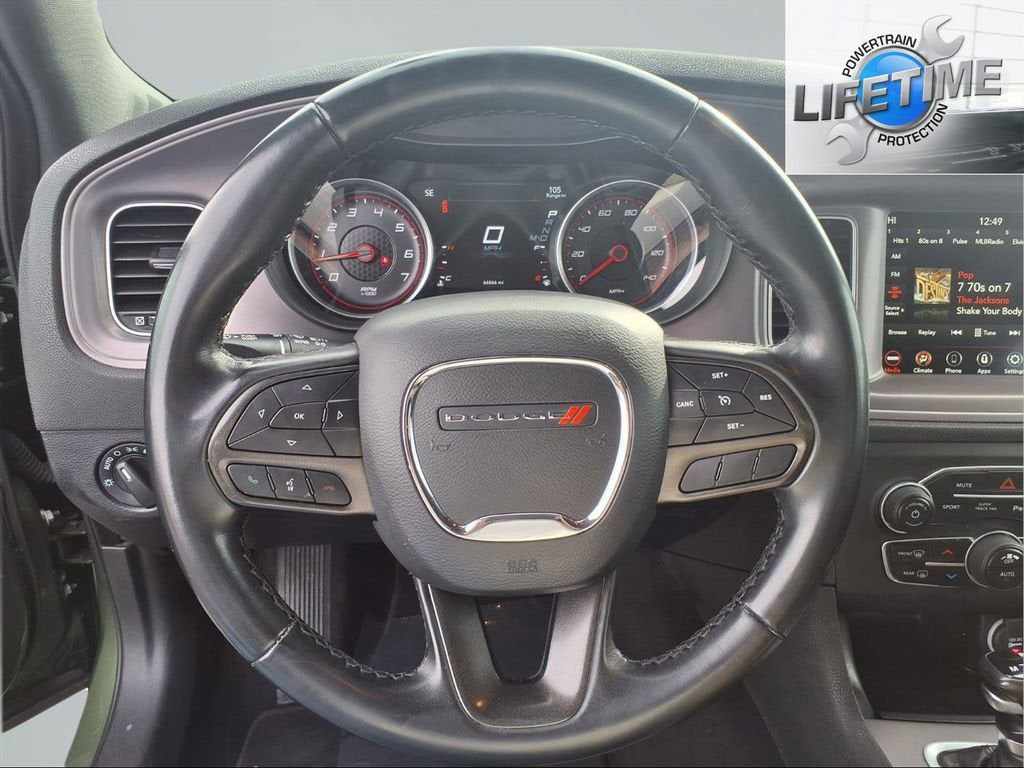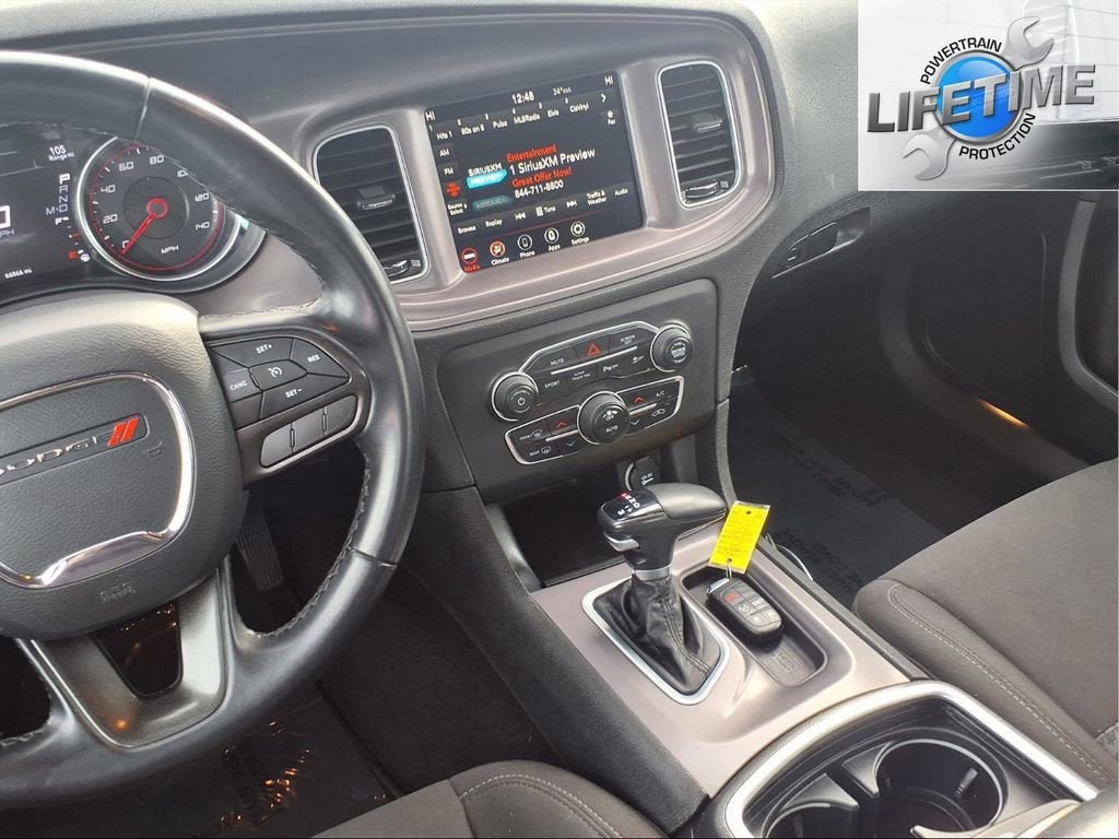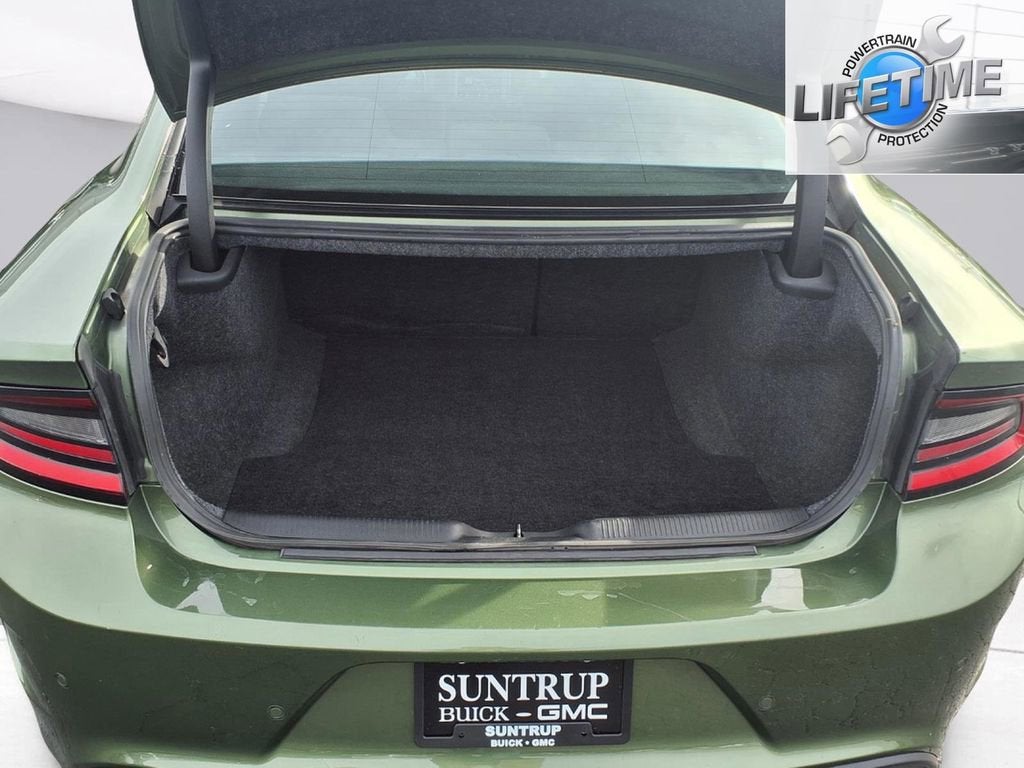 This Charger is well equipped with Alloy wheels, Apple CarPlay, Front Bucket Seats, Remote keyless entry, Speed control, Steering wheel mounted audio controls, Traction control, 1-Yr SiriusXM Guardian Trial, 2-Piece Shark Fin Antenna, 4-Wheel Disc Brakes, 4G LTE Wi-Fi Hot Spot, 6 Speakers, 8.4 Touchscreen Display, ABS brakes, Air Conditioning, AM/FM radio: SiriusXM, Anti-whiplash front head restraints, Apple CarPlay/Android Auto, Auto-dimming Rear-View mirror, Automatic temperature control, Brake assist, Bumpers: body-color, Cloth Performance Seats, Compass, Delay-off headlights, Driver door bin, Driver vanity mirror, Dual front impact airbags, Dual front side impact airbags, Electronic Stability Control, Emergency communication system: SiriusXM Guardian, For Details, Visit DriveUconnect.com, Four wheel independent suspension, Front anti-roll bar, Front Center Armrest, Front dual zone A/C, Front reading lights, Fully automatic headlights, Garage door transmitter: HomeLink, Google Android Auto, GPS Antenna Input, HD Radio, Heated door mirrors, Illuminated entry, Integrated Center Stack Radio, Integrated Voice Command w/Bluetooth®, Knee airbag, Leather Shift Knob, Low tire pressure warning, Media Hub (2 USB, AUX), Occupant sensing airbag, Outside temperature display, Overhead airbag, Overhead console, Panic alarm, ParkView Rear Back-Up Camera, Passenger door bin, Passenger vanity mirror, Power 2-Way Driver Lumbar Adjust, Power 8-Way Driver Seat, Power door mirrors, Power driver seat, Power steering, Power windows, Radio: Uconnect 4C w/8.4 Display, Rear anti-roll bar, Rear Armrest w/Cupholder Seat, Rear reading lights, Rear seat center armrest, Rear window defroster, Speed-Sensitive Wipers, Split folding rear seat, Spoiler, Tachometer, Telescoping steering wheel, Tilt steering wheel, Trip computer, USB Host Flip, Variably intermittent wipers, and Wheels: 20 x 8 Satin Carbon Painted.