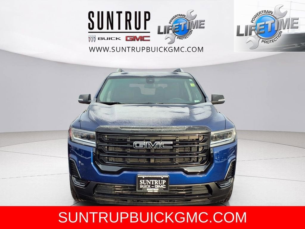 This Acadia is well equipped with Driver Convenience Package (120-Volt Power Outlet, 8-Way Power Driver Seat Adjuster, Brushed Aluminum Roof Rails, Hands Free Power Programmable Liftgate, Heated Driver & Front Passenger Seats, Power Driver Lumbar Control Seat Adjuster, and Remote Start), Elevation Edition (20 Machined Aluminum Wheels and Gloss Black Roof Rails), Preferred Equipment Group 3SA, 3.47 Final Drive Axle Ratio, 3rd row seats: split-bench, 4-Way Manual Driver Seat Adjuster, 4-Way Manual Passenger Seat Adjuster, 4-Wheel Disc Brakes, 6 Speakers, 6-Passenger (2-2-2 Seating Configuration), 6-Speaker Audio System Feature, ABS brakes, Air Conditioning, Alloy wheels, AM/FM radio: SiriusXM, Apple CarPlay/Android Auto, Auto High-beam Headlights, Automatic temperature control, Brake assist, Bumpers: body-color, Compass, Delay-off headlights, Driver door bin, Driver vanity mirror, Dual front impact airbags, Dual front side impact airbags, Electronic Stability Control, Emergency communication system: OnStar and GMC connected services capable, Four wheel independent suspension, Front & Rear Black GMC Lettering Emblems, Front anti-roll bar, Front Bucket Seats, Front Center Armrest, Front dual zone A/C, Front reading lights, Fully automatic headlights, Heated door mirrors, Illuminated entry, Knee airbag, Low tire pressure warning, Not Equipped w/Front & Rear Park Assist (060), Occupant sensing airbag, Outside temperature display, Overhead airbag, Overhead console, Panic alarm, Passenger door bin, Passenger vanity mirror, Power door mirrors, Power steering, Power windows, Premium Cloth Seat Trim, Radio data system, Radio: AM/FM w/8 Diagonal Multi-Touch Display, Rear air conditioning, Rear anti-roll bar, Rear reading lights, Rear window defroster, Rear window wiper, Remote keyless entry, Security system, SiriusXM Radio, Speed control, Speed-sensing steering, Spoiler, Steering wheel mounted audio controls, Tachometer, Telescoping steering wheel, Tilt steering wheel, Traction control, Trip computer, Turn signal indicator mirrors, Variably intermittent wipers, Voltmeter, Wheels: 18 Machined Aluminum w/Dark Accents, and Wireless Apple CarPlay/Wireless Android Auto.