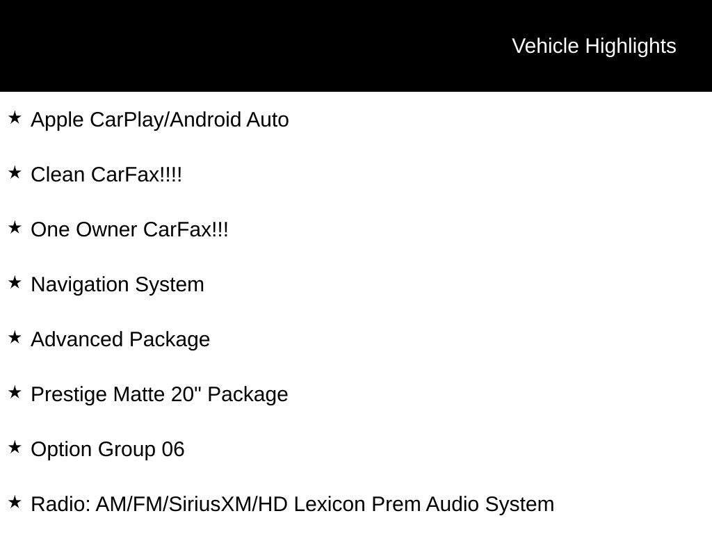 - Radio: AM/FM/SiriusXM/HD Lexicon Prem Audio System