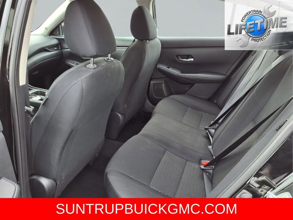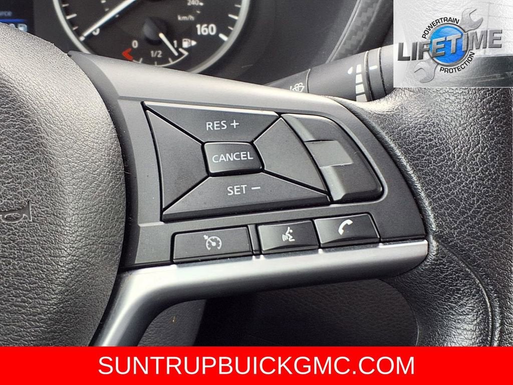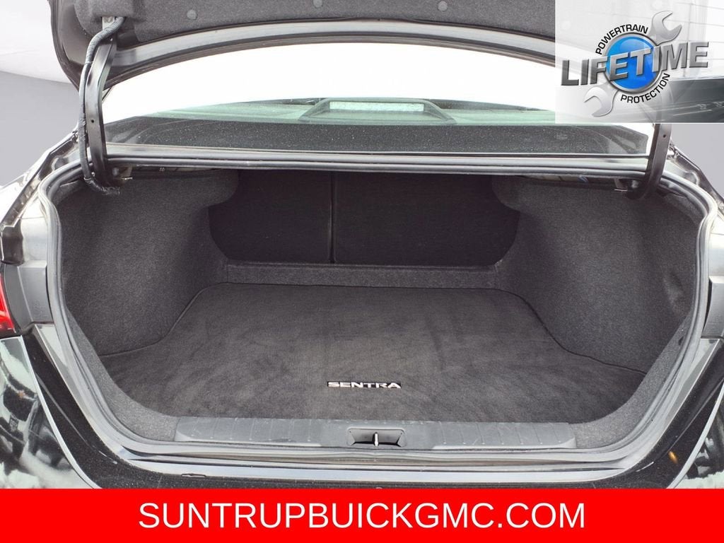 This Sentra is well equipped with Front Bucket Seats, Power windows, Rear Parking Sensors, Remote keyless entry, Steering wheel mounted audio controls, 16 Steel Wheels w/Full Wheel Covers, 4 Speakers, ABS brakes, Air Conditioning, AM/FM radio, Auto High-beam Headlights, Blind Spot Warning, Brake assist, Bumpers: body-color, Carpeted Floor Mats w/Trunk Mat, Clear Rear Bumper Protector, Cloth Seat Trim, Delay-off headlights, Driver door bin, Driver vanity mirror, Dual front impact airbags, Dual front side impact airbags, Electronic Stability Control, Four wheel independent suspension, Front anti-roll bar, Front Center Armrest, Front reading lights, Fully automatic headlights, Illuminated entry, Knee airbag, Low tire pressure warning, NissanConnect featuring Apple CarPlay and Android Auto, Occupant sensing airbag, Outside temperature display, Overhead airbag, Overhead console, Panic alarm, Passenger door bin, Passenger vanity mirror, Power door mirrors, Power steering, Radio data system, Radio: AM/FM w/RDS/MP3/Aux-In, Rear anti-roll bar, Rear side impact airbag, Rear window defroster, Speed control, Speed-sensing steering, Split folding rear seat, Tachometer, Telescoping steering wheel, Tilt steering wheel, Traction control, Trip computer, and Variably intermittent wipers.