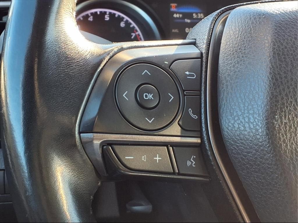 This Camry is well equipped with ABS brakes, Active Cruise Control, Alloy wheels, Electronic Stability Control, Front dual zone A/C, Heated door mirrors, Illuminated entry, Low tire pressure warning, Remote keyless entry, Traction control, 4-Wheel Disc Brakes, 6 Speakers, 8.0J x 18 Alloy Wheels, Air Conditioning, AM/FM radio: SiriusXM, Apple CarPlay/Android Auto, Auto High-beam Headlights, Automatic temperature control, Brake assist, Bumpers: body-color, Delay-off headlights, Driver door bin, Driver vanity mirror, Dual front impact airbags, Dual front side impact airbags, Emergency communication system: Safety Connect (1-year trial), Exterior Parking Camera Rear, Four wheel independent suspension, Front anti-roll bar, Front Bucket Seats, Front Center Armrest, Front reading lights, Fully automatic headlights, Knee airbag, Leather steering wheel, Occupant sensing airbag, Outside temperature display, Overhead airbag, Overhead console, Panic alarm, Passenger door bin, Passenger vanity mirror, Power door mirrors, Power driver seat, Power steering, Power windows, Radio data system, Radio: Audio, Rear anti-roll bar, Rear seat center armrest, Rear side impact airbag, Rear window defroster, Security system, Speed control, Speed-sensing steering, Split folding rear seat, Spoiler, Sport SofTex Seat Trim w/Fabric Inserts, Steering wheel mounted audio controls, Tachometer, Telescoping steering wheel, Tilt steering wheel, Trip computer, Turn signal indicator mirrors, and Variably intermittent wipers.