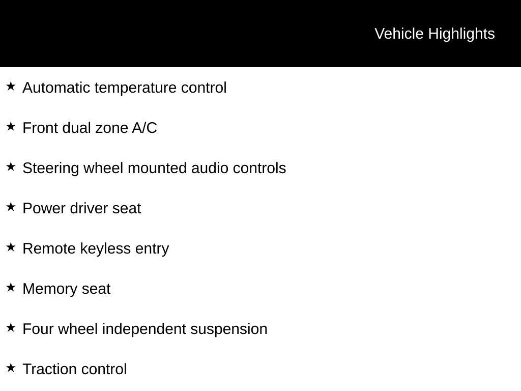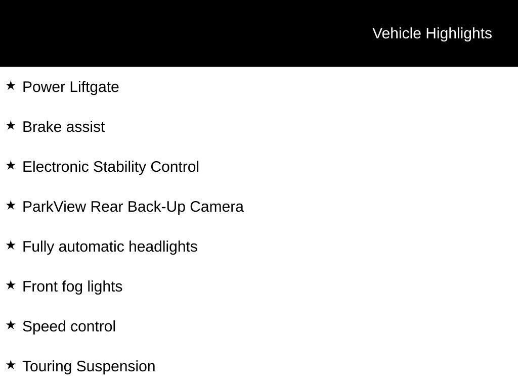 - 4-Wheel Disc Brakes w/4-Wheel ABS, Front Vented Discs, Brake Assist, Hill Hold Control and Electric Parking Brake