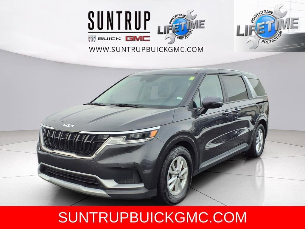 This Carnival is well equipped with Alloy wheels, Apple CarPlay & Android Auto, Remote keyless entry, Security system, Steering wheel mounted audio controls, Traction control, 3.51 Axle Ratio, 3rd row seats: split-bench, 4-Wheel Disc Brakes, 6 Speakers, ABS brakes, Air Conditioning, AM/FM radio, Auto High-beam Headlights, Brake assist, Bumpers: body-color, Cloth Seat Trim, Delay-off headlights, Driver door bin, Driver vanity mirror, Dual front impact airbags, Dual front side impact airbags, Electronic Stability Control, Four wheel independent suspension, Front anti-roll bar, Front Bucket Seats, Front Center Armrest, Front reading lights, Fully automatic headlights, Heated door mirrors, Illuminated entry, Knee airbag, Leather Shift Knob, Low tire pressure warning, Occupant sensing airbag, Outside temperature display, Overhead airbag, Overhead console, Panic alarm, Passenger door bin, Passenger vanity mirror, Power door mirrors, Power steering, Power windows, Radio: AM/FM Audio System, Rear air conditioning, Rear anti-roll bar, Rear reading lights, Rear window defroster, Rear window wiper, Reclining 3rd row seat, Speed control, Speed-sensing steering, Split folding rear seat, Spoiler, Tachometer, Telescoping steering wheel, Tilt steering wheel, Trip computer, Turn signal indicator mirrors, Variably intermittent wipers, and Wheels: 6.5J x 17 Clear Silver Painted Alloy.