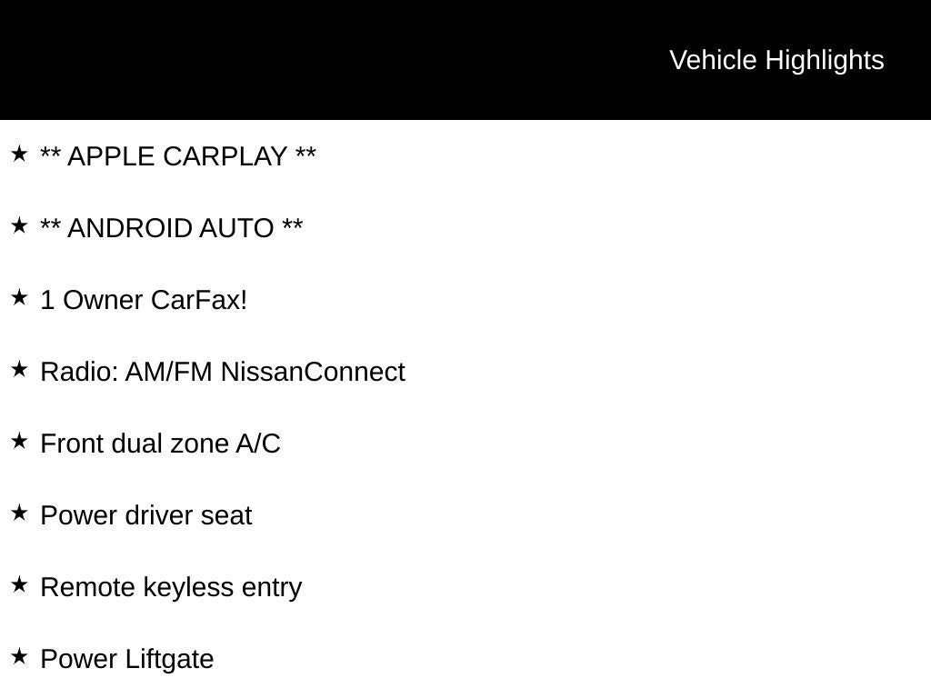 - NissanConnect featuring Apple CarPlay and Android Auto