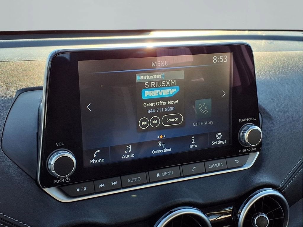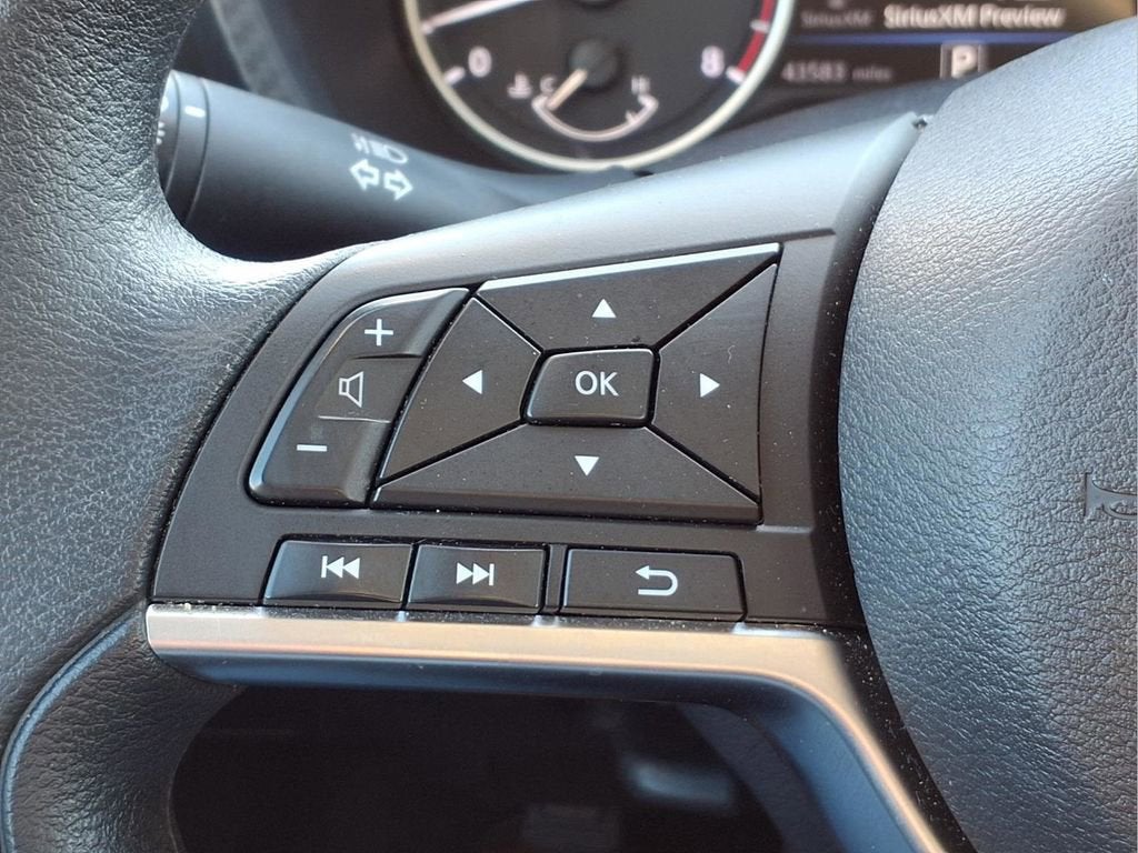 This Sentra is well equipped with 16 Alloy Wheels, Blind Spot Warning, Front Bucket Seats, Rear Parking Sensors, Remote keyless entry, Security system, Steering wheel mounted audio controls, Traction control, 4-Wheel Disc Brakes, 6 Speakers, ABS brakes, Air Conditioning, Alloy wheels, AM/FM radio: SiriusXM, Auto High-beam Headlights, Brake assist, Bumpers: body-color, Carpeted Floor Mats w/Trunk Mat, Delay-off headlights, Driver door bin, Driver vanity mirror, Dual front impact airbags, Dual front side impact airbags, Electronic Stability Control, Four wheel independent suspension, Front anti-roll bar, Front Center Armrest, Front reading lights, Fully automatic headlights, Illuminated entry, Knee airbag, Leather steering wheel, Low tire pressure warning, NissanConnect featuring Apple CarPlay and Android Auto, Occupant sensing airbag, Outside temperature display, Overhead airbag, Overhead console, Panic alarm, Passenger door bin, Passenger vanity mirror, Power door mirrors, Power steering, Power windows, Radio data system, Radio: AM/FM w/RDS/MP3/Aux-In, Rear anti-roll bar, Rear side impact airbag, Rear window defroster, Speed control, Speed-sensing steering, Split folding rear seat, Tachometer, Technical Spec Change 2, Telescoping steering wheel, Tilt steering wheel, Trip computer, Upgraded Cloth Seat Trim, and Variably intermittent wipers.