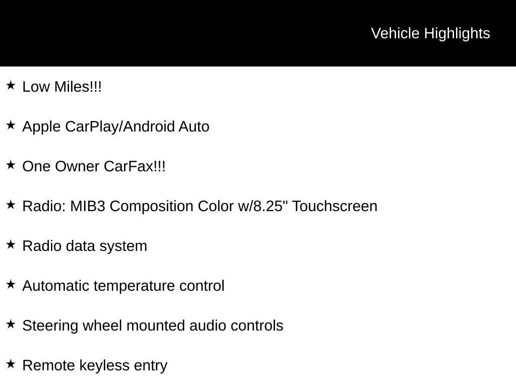 - Radio: MIB3 Composition Color w/8.25 Touchscreen