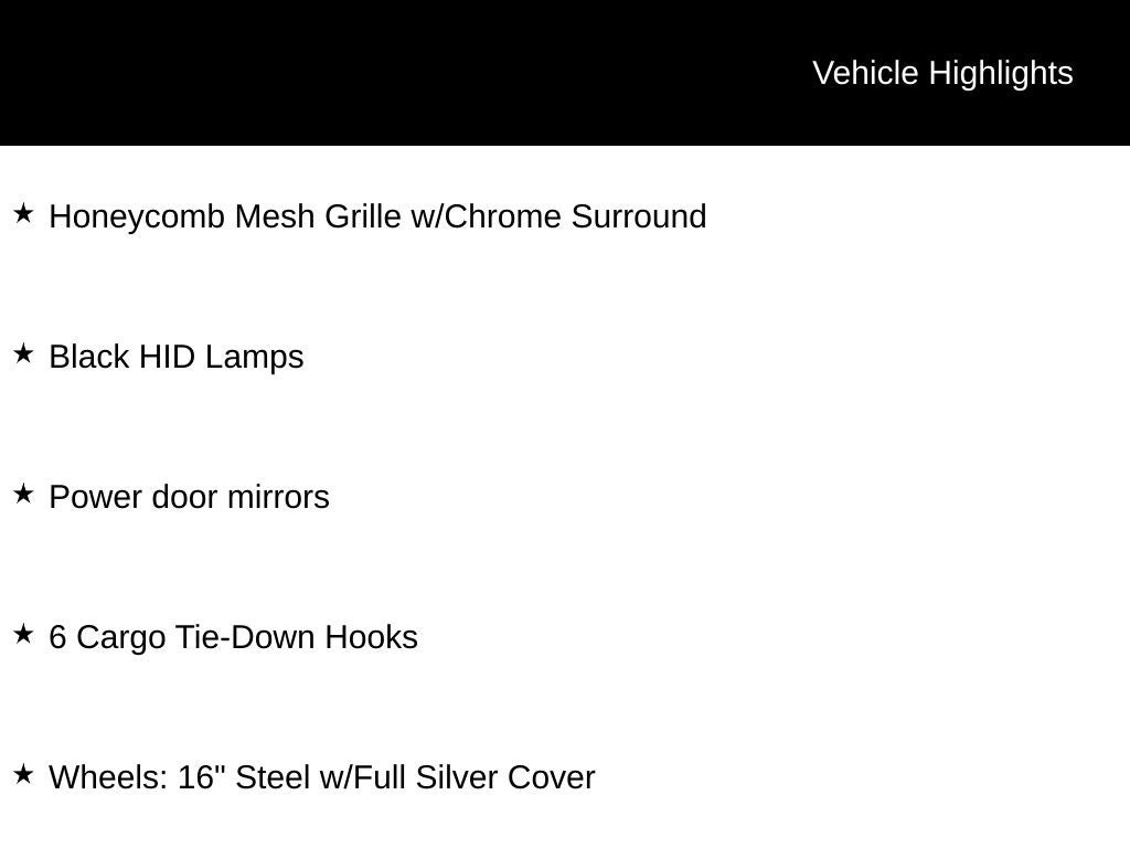 - Exterior Upgrade Package with Wiper Activated Headlamps, Honeycomb Mesh Grille, and 16 Steel Wheels