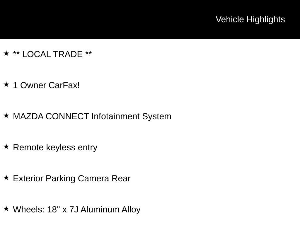 - Emergency communication system: MAZDA CONNECTâ„¢ed Services (3-year trial subscription included)