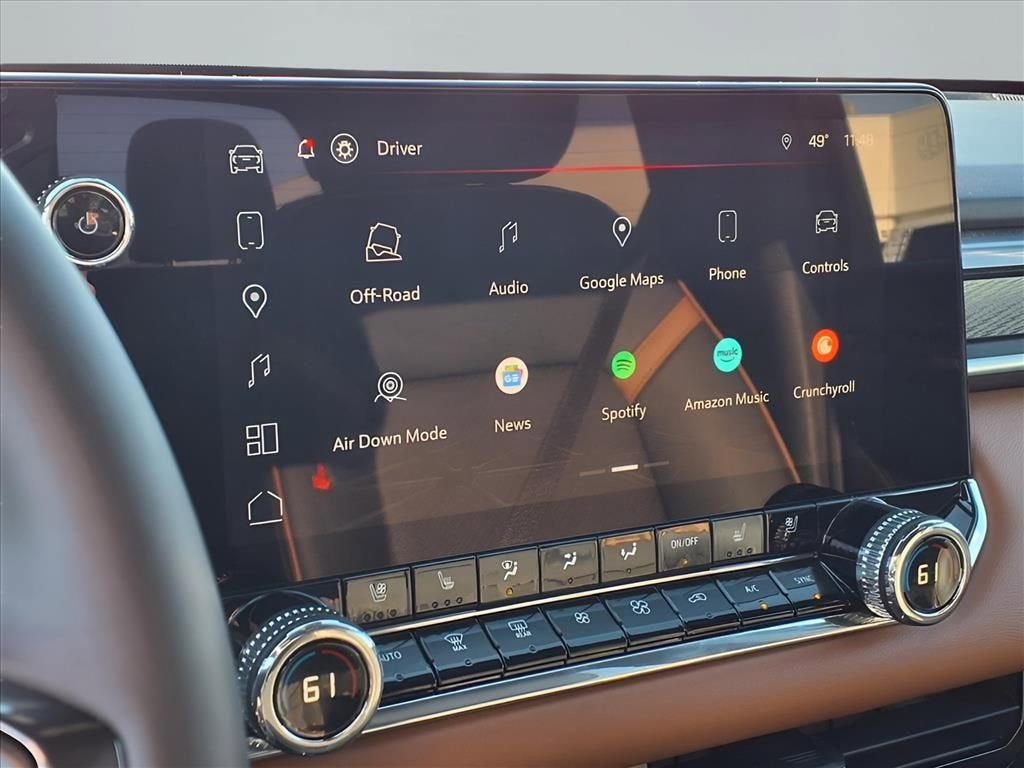 This Canyon is well equipped with AT4 Premium Package (6-Way Power Passenger Seat Adjuster, Driver Memory, Driver Seatback Map Pocket, Heated Steering Wheel, Perforated Leather-Appointed Seat Trim, Power Passenger Lumbar Control Seat Adjuster, and Wireless Phone Charging), Canyon Safety Plus Package (Rear Cross Traffic Braking and Ultrasonic Rear Park Assist), Preferred Equipment Group 4SG (8-Way Power Driver Seat Adjuster, Remote Vehicle Starter System, 120-Volt Bed Mounted Power Outlet, 2 Rear USB Ports in Center Console (Charge-Only), Automatic Emergency Braking, Canyon Pro Safety, Following Distance Indicator, Forward Collision Alert, Front LED Fog Lamps, Inside Rear-View Auto-Dimming Mirror, MultiStow Tailgate Storage Compartment, Power Driver Lumbar Control Seat Adjuster, Rear of Console 120-Volt Power Outlet, and Tailgate Keyed Cylinder Lock), Alloy wheels, Apple CarPlay/Android Auto, Front fog lights, Navigation System, Off-Road Suspension, Security system, Steering wheel mounted audio controls, Traction control, 2 1st Row USB Charge/Data Ports, 3.42 Rear Axle Ratio, 4-Way Manual Front Passenger Seat Adjuster, 4-Wheel Disc Brakes, 6 Speakers, 6-Speaker Audio System Feature, ABS brakes, Air Conditioning, AM/FM radio: SiriusXM with 360L, Auto High-beam Headlights, Auto-dimming Rear-View mirror, Automatic Stop/Start, Automatic temperature control, Brake assist, Bumpers: body-color, Cloth/CoreTec Seat Trim, Compass, Delay-off headlights, Driver door bin, Driver Mode Selector, Driver vanity mirror, Dual front impact airbags, Dual front side impact airbags, Electronic Stability Control, Emergency communication system: OnStar, Front anti-roll bar, Front Bucket Seats, Front Center Armrest, Front dual zone A/C, Front License Plate Kit, Front Passenger Seatback Map Pocket, Front reading lights, Front wheel independent suspension, Heated door mirrors, Heated front seats, Illuminated entry, Low tire pressure warning, Occupant sensing airbag, Outside temperature display, Overhead airbag, Overhead console, Panic alarm, Passenger door bin, Passenger vanity mirror, Power door mirrors, Power driver seat, Power steering, Power windows, Radio data system, Rear reading lights, Rear step bumper, Rear window defroster, Remote keyless entry, Speed control, Speed-sensing steering, Split folding rear seat, Stop/Start System Disable Button Engine Control, Tachometer, Telescoping steering wheel, Tilt steering wheel, Trip computer, Variably intermittent wipers, and Wireless Apple CarPlay/Wireless Android Auto.
