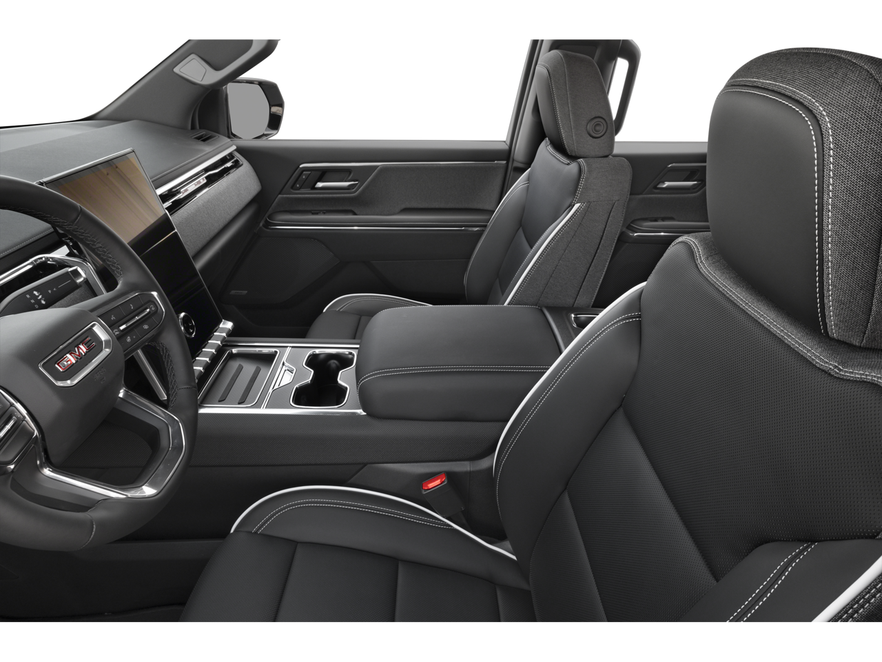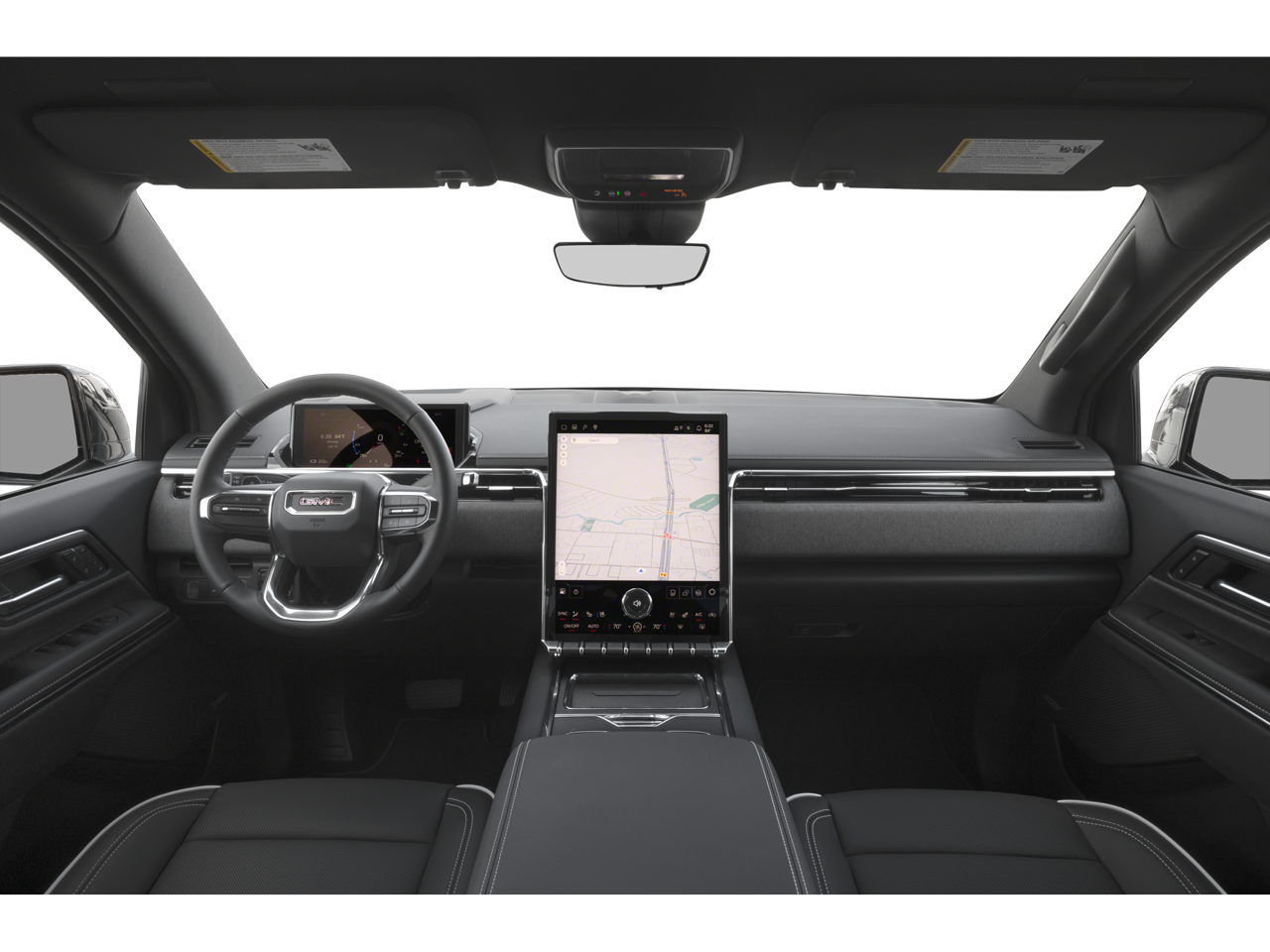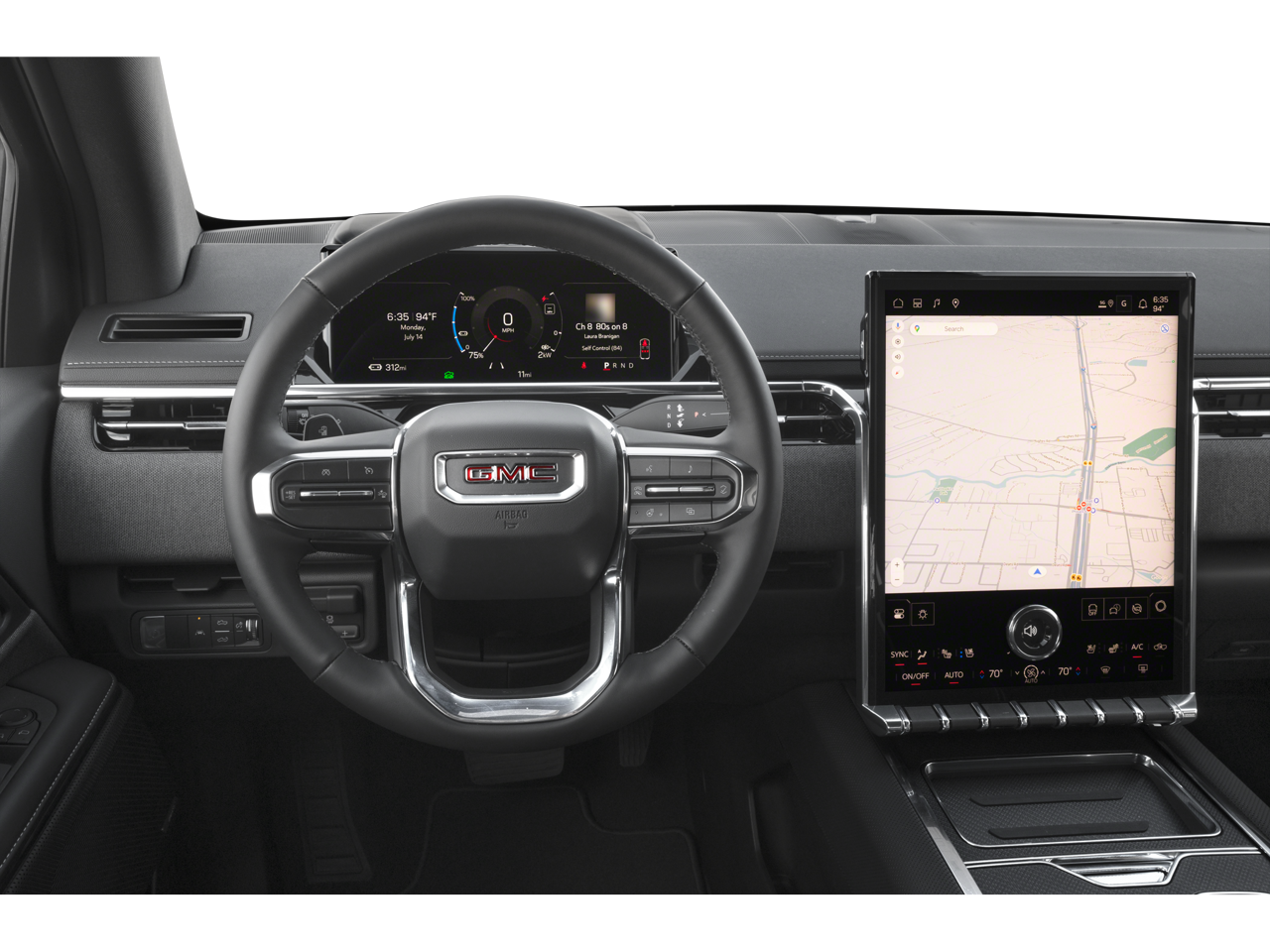 This Sierra EV is well equipped with Preferred Equipment Group 3SB (Standard Range Battery Pack and Wheels: 18 x 8.5 Aluminum Machined Face), 11.63 Axle Ratio, 1st and 2nd Rows All-Weather Floor Liners, 4-Way Manual Front Passenger Seat Adjuster, 4-Wheel Disc Brakes, 6 Speakers, 6-Speaker Audio System Feature, 8-Way Power Driver Seat Adjuster, ABS brakes, Air Conditioning, Alloy wheels, AM/FM radio: SiriusXM with 360L, Auto High-beam Headlights, Auto-dimming Rear-View mirror, Automatic temperature control, Brake assist, Bumpers: body-color, CoreTec Seating Surfaces, Delay-off headlights, Driver 2-Way Power Lumbar Seat Adjuster, Driver door bin, Driver vanity mirror, Dual front impact airbags, Dual front side impact airbags, Electronic Stability Control, Emergency communication system: OnStar, Four wheel independent suspension, Front anti-roll bar, Front Bucket Seats, Front Bucket Seats with Center Console, Front dual zone A/C, Front License Plate Kit, Front reading lights, Fully automatic headlights, Garage door transmitter, Heated door mirrors, Heated Front Driver and Passenger Seats, Heated front seats, Heated steering wheel, Low tire pressure warning, Navigation System, Occupant sensing airbag, Outside temperature display, Overhead airbag, Overhead console, Panic alarm, Passenger door bin, Passenger vanity mirror, Power door mirrors, Power driver seat, Power steering, Power windows, Premium audio system: Premium GMC Infotainment System, Radio data system, Radio: 16.8 Diagonal Premium GMC Infotainment System, Rain sensing wipers, Rear fog lights, Rear reading lights, Rear seat center armrest, Rear step bumper, Rear window defroster, Remote keyless entry, Security system, SiriusXM with 360L Trial Subscription, Speed control, Speed-sensing steering, Split folding rear seat, Sport steering wheel, Standard Suspension, Steering wheel mounted audio controls, Telescoping steering wheel, Tilt steering wheel, Traction control, Trip computer, and Variably intermittent wipers.